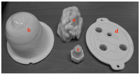 Concerning the phantom’s rigid structure, recent progress in additive manufacturing now allows us to build up relatively easily reproducible 3D-printed complex structures from STL (stereolithography) files that describe their surfaces. For anthropomorphic structures, these STL files can be obtained from MRI or X-ray CT scans. Finally, one further advantage of 3D-printed phantoms is that the STL file can also be used to perform numerical simulations along with experimental validations. Before the design of the breast and head phantoms presented herein, other phantoms had already been built up in this way [25,26,27,28]; however, their structures were not suitable to be filled up with several fluid TMMs, as one is made of a unique cavity while the others are made of several parts which are intended to be used as temporary molds where gel-based breast or head parts are formed. The novelty, herein, was that the phantoms comprise several cavities intended to be filled up with different fluid TMMs. Since then, similar breast phantoms have been proposed [29,30,31].