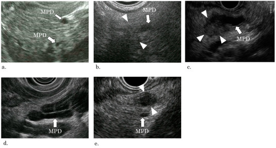 - Kawaguchi, S.; Kikuyama, M.; Satoh, T.; Terada, S.; Kanemoto, H.; Arai, K. Minimally invasive ductal pancreatic carcinoma without low echoic area on endoscopic ultrasound examinations: a case report. Suizo 2017, 32, 852–858. (In Japanese) [Google Scholar] [CrossRef]