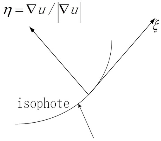 In Figure 1, and represent the direction perpendicular and parallel to , respectively. For image, is an edge with constant gray scale value and is the flow-line with maximal gray scale value variation. Equation (6) can be rewritten as following