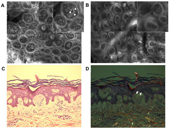 - Koller, S.; Gerger, A.; Ahlgrimm-Siess, V.; Weger, W.; Smolle, J.; Hofmann-Wellenhof, R. In vivo reflectance confocal microscopy of erythematosquamous skin diseases. Exp. Dermatol. 2009, 18, 536–540. [Google Scholar] [CrossRef] [PubMed]
