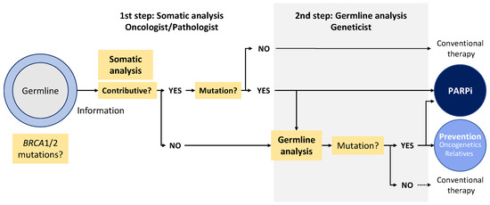 Arguments for proposing a first-line somatic process for theranostic BRCA1/2 testing.