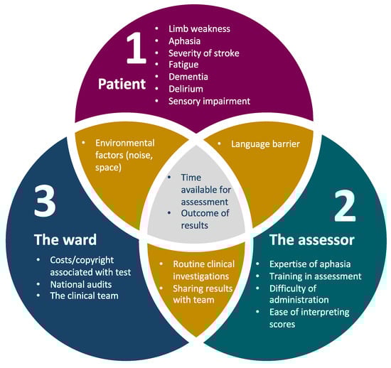 Factors affecting feasibility of cognitive assessment in acute stroke. Factors listed are illustrative but not exhaustive.