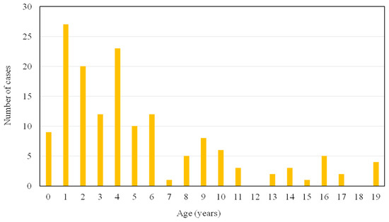 In our previous study, the normal reference values of the three urinary GAGs (DS, HS, and KS) using the LC-MS/MS method, and the non-specific total level of urinary GAGs (DMB/creatinine ratio) using the dye-based method, were determined from 221 urine samples of healthy controls. The reference values were divided into five age groups as follows: 0–1 years, 1–3 years, 4–9 years, 10–17 years, and >18 years of age. The normal reference ranges of DS, HS, and KS were consistent among the five age groups; however, the normal reference ranges of the DMB ratio decreased as the age of the normal controls increased [56].