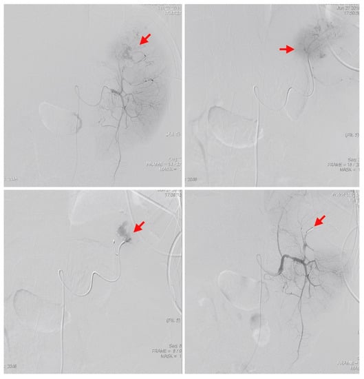 - Renzulli, P.; Hostettler, A.; Schoepfer, A.M.; Gloor, B.; Candinas, D. Systematic review of atraumatic splenic rupture. Br. J. Surg. 2009, 96, 1114–1121. [Google Scholar] [CrossRef] [PubMed]