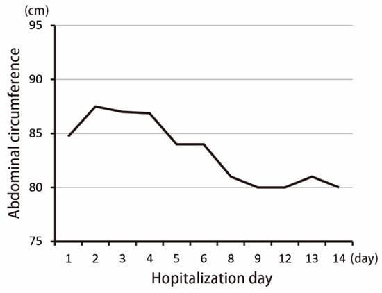 The patient was hospitalized in the intensive care unit (ICU) for post-embolization care. There was no progressive abdominal pain. The follow-up abdominal circumference was decreased, which reflected that intra-abdominal bleeding was under control due to a decreased amount of ascites (Figure 3). The follow-up CT scan revealed the spleen hemorrhage had been controlled through coil embolization (Figure 4). The hemoperitoneum also improved. A bone marrow examination showed sheets of small blasts with scant cytoplasm. Monotonous blasts comprised more than 95% of nucleated cells. ALL with scant cytoplasm was diagnosed with BCR-ABL (+), Periodic acid-Schiff (PAS) (−), peroxidase (−), TdT (< 1%), CD34 (< 1%), CD117 (< 1%), MPO (+, 60%), and CD20 (+, 5–10%). Broad-spectrum antibiotics, including Meropenem, Mycamine, and Teicoplanin, were administered to treat a severe immunocompromised infection due to persistent fever. After supportive care, extubation was performed and the patient stabilized. Target therapy with the agent Dasatinib (50 mg three times per day) combined with chemotherapy agents, including Vincristine and Methotrexate, controlled the progression of ALL. Intrathecal chemotherapy with Methotrexate (15 mg) and methylprednisolone (40 mg) was administered. Bone marrow aspiration and cytology were performed again and revealed normal cellularity. There were no significant side effects or complications. He was regularly followed-up at the outpatient clinic. The follow-up laboratory data is shown in Table 2. A patient consent form has been obtained from the patient.