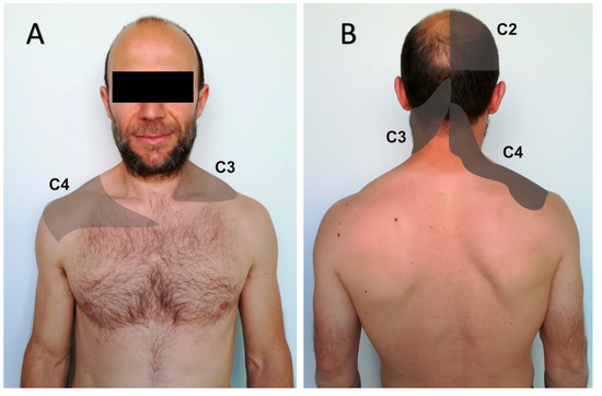 - Lee, M.W.L.; McPhee, R.W.; Stringer, M.D. An evidence-based approach to human dermatomes. Clin. Anat. 2008, 21, 363–373. [Google Scholar] [CrossRef] [PubMed]