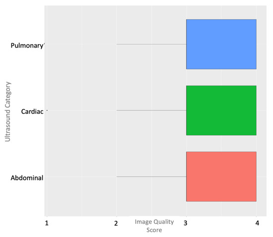 Box plot of image quality scores by ultrasound category.