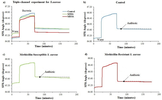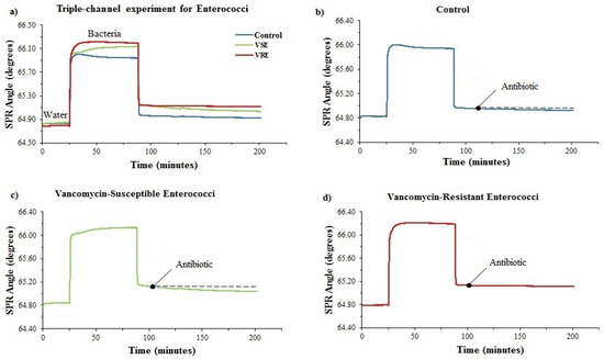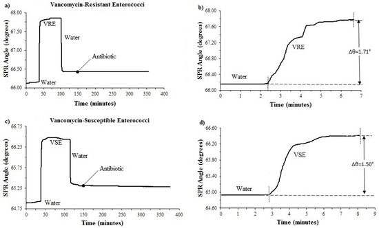 - Chiang, Y.-L.; Lin, C.-H.; Yen, M.-Y.; Su, Y.-D.; Chen, S.-J.; Chen, H.-F. Innovative antimicrobial susceptibility testing method using surface plasmon resonance. Biosens. Bioelectron. 2009, 24, 1905–1910. [Google Scholar] [CrossRef] [PubMed]