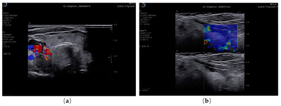 - Borlea, A.; Cotoi, L.; Mozos, I.; Stoian, D. Advanced Ultrasound Techniques in Preoperative Diagnostic of Thyroid Cancers. In Knowledges on Thyroid Cancer; IntechOpen: London, UK, 2019. [Google Scholar]