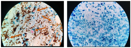 - Shea, Y.R.; Davis, J.L.; Huang, L.; Kovacs, J.A.; Masur, H.; Mulindwa, F.; Opus, S.; Chow, Y.; Murray, P.R. High Sensitivity and Specificity of Acid-Fast Microscopy for Diagnosis of Pulmonary Tuberculosis in an African Population with a High Prevalence of Human Immunodeficiency Virus. J. Clin. Microbiol. 2009, 47, 1553–1555. [Google Scholar] [CrossRef] [PubMed][Green Version]