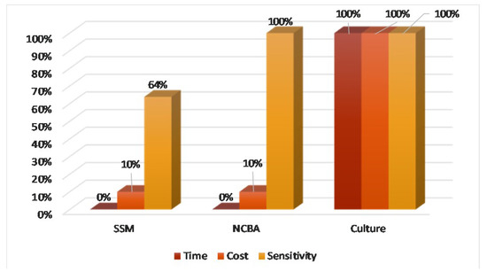 Time, cost, and sensitivity comparison of SSM, NCBA, and culture.