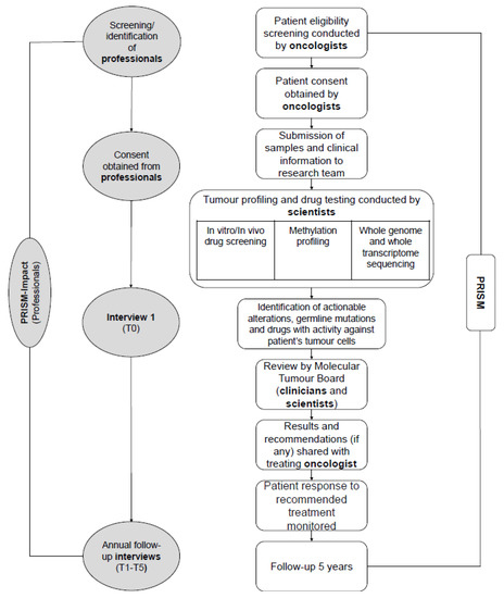 - Vetsch, J.; Wakefield, C.E.; Duve, E.; McGill, B.C.; Warby, M.; Tucker, K.M.; Malkin, D.; Lau, L.; Zielger, D.S. Parents’, healthcare professionals’ and scientists’ experiences of a precision medicine pilot trial for high-risk childhood cancer patients: A qualitative study. JCO Precis. Oncol. 2019. [Google Scholar] [CrossRef]