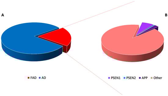 In particular, it has been estimated that 15–25% of total AD accounts for familial Alzheimer’s disease (FAD) (Figure 1) [5].