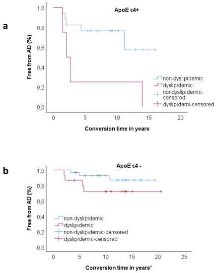 - Xu, W.-L.; Caracciolo, B.; Wang, H.-X.; Santoni, G.; Winblad, B.; Fratiglioni, L. Accelerated progression from mild cognitive impairment to dementia among APOE ε4ε4 carriers. J. Alzheimers Dis. JAD 2013, 33, 507–515. [Google Scholar] [CrossRef]