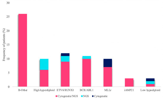 Diagnostic techniques, such as karyotyping and fluorescence in situ hybridization (FISH), remain the gold standard in clinical practice in the diagnosis of B-ALL patients [14,15]. In addition, other conventional techniques, such as SNPs arrays and multiplex ligation-dependent probe amplification (MLPA), are often used to identify smaller CNVs and larger losses/gains [16]. However, these techniques are not always sufficient to identify the broad spectrum of new alterations detected in the disease and also have significant limitations in terms of detection sensitivity [9,17,18].