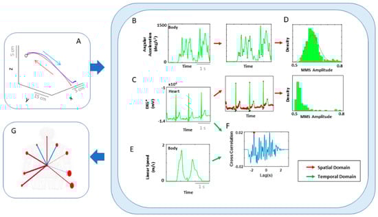 These two axes were explored at the voluntary level of motor control interleaving deliberate goal-directed (forward) actions and spontaneous (backward) segments of the full pointing loop. We also included in our analyses the autonomic level of control in the taxonomy of Figure 1A, and to that end, we co-registered the heart activity and incorporated it into the bodily kinematics activity (Figure 3B). We next explain how to overcome challenges in sensor data fusion from disparate systems along with new approaches to analyze these multi-modal data.