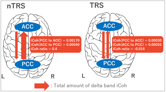 For further investigation of the pathophysiology of TRS, it is indispensable to detect the direction of abnormality between the ACC and DMN. In this study, we hypothesized that the aberrant effective connectivity between the PCC and ACC may be associated with the pathophysiology of TRS. Therefore, we aimed to investigate the causal effective connectivities as indexed by iCoh of resting-state EEG, focusing on the path between the PCC and ACC between patients with TRS and nTRS.