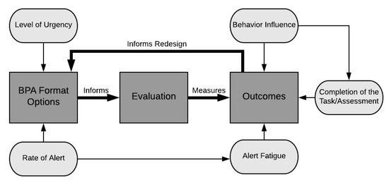 As an example, an institution would not want to implement all BPAs as pop-up alerts, as this could cause extreme alert fatigue and devalue alerts critical to patient safety. Instead, many BPAs are designed to be “passive”, displayed in a section of the EHR to be viewed by the user without interruption. The format of the alert has major implications for the effectiveness of the BPA, and should be carefully considered and tested. However, the decision to implement an interruptive or non-interruptive BPA is not a binary choice; hybrid options and new formats have become available. The addition of these new formats further complicates the choice of CDS alert format and the selection of methods for evaluation.