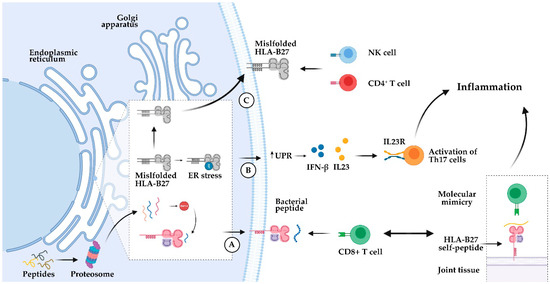 - Colbert, R.A.; DeLay, M.L.; Layh-Schmitt, G.; Sowders, D.P. HLA-B27 misfolding and spondyloarthropathies. Adv. Exp. Med. Biol. 2009, 649, 217–234. [Google Scholar]