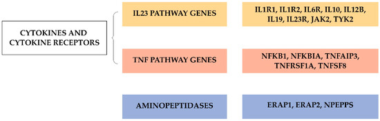 - Costantino, F.; Breban, M.; Garchon, H.J. Genetics and Functional Genomics of Spondyloarthritis. Front. Immunol. 2018, 9, 2933. [Google Scholar] [CrossRef]