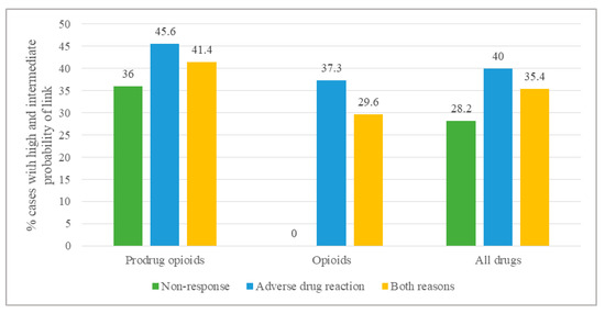 For prodrug analgesics, the link between an ADR or a non-response and the metabolic status was rated globally as intermediate to high in 41.4% of all cases. This link was evaluated as being intermediate to high in 45.7% of cases for occurrence of an ADR and in 35.9% for non-response.