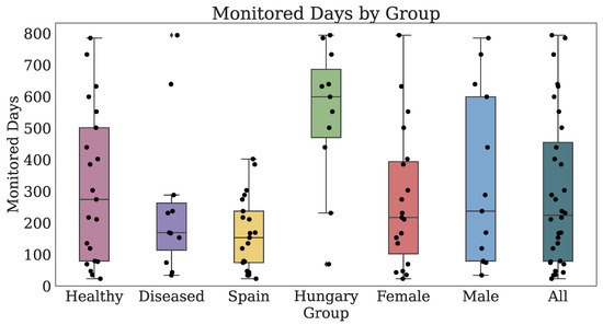 Our study involved 42 seniors from Hungary and Spain. The seniors provided PROs on questionnaires chosen by the consortium of the CoME project partners along [22]. The measured outcomes included physical activity (using the International Physical Activity Questionnaire Long, or IPAQ [26]), social support (Multidimensional Scale of Social Support, MSPSS [27]), anxiety and depression (Goldberg Anxiety and Depression Scale, GADS [28]), nutrition (Prevention with Mediterranean Diet, PREDIMED [29,30] and Self-Reported Mini Nutritional Assessment, SelfMNA [31]), memory (Memory Failures of Everyday, MFE [32]), sleep (Pittsburgh Sleep Quality Index, PSQI [33]), and health-related Quality of Life (EuroQoL with five dimensions and three levels, EQ-5D-3L [34]) (Appendix B.1.1 describes the questionnaires and their validated scales in depth). Participants also provided TechROs of physical activity, sleep, and heart rate (Fitbit Charge 2 consumer wearable, [35]) during the study, for up to two years.