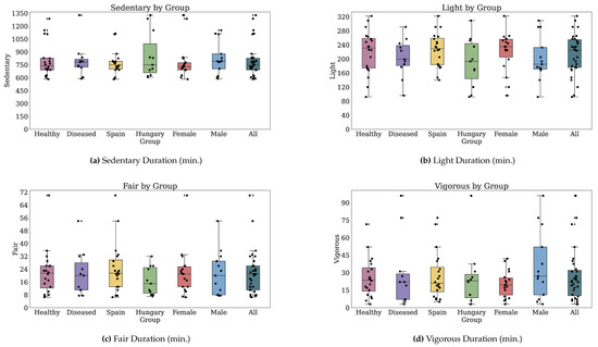 - Fitbit, Inc. Fitbit User Forums: How Activity Categories Are Determined; Fitbit, Inc.: San Francisco, CA, USA, 2019. [Google Scholar]