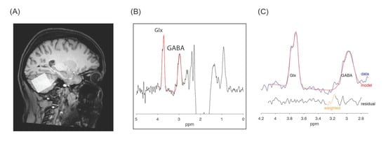 - Mullins, P.G.; McGonigle, D.J.; O’Gorman, R.L.; Puts, N.A.J.; Vidyasagar, R.; Evans, C.J.; Edden, R.A.E. Current practice in the use of MEGA-PRESS spectroscopy for the detection of GABA. Neuroimage 2014, 86, 43–52. [Google Scholar] [CrossRef]