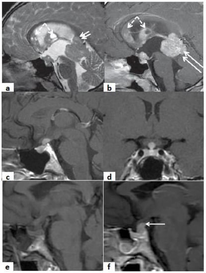 - Pal, R.; Rai, A.; Vaiphei, K.; Gangadhar, P.; Gupta, P.; Mukherjee, K.K.; Singh, P.; Ray, N.; Bhansali, A.; Dutta, P. Intracranial Germinoma Masquerading as Secondary Granulomatous Hypophysitis: A Case Report and Review of Literature. Neuroendocrinology 2020, 110, 422–429. [Google Scholar] [CrossRef] [PubMed]