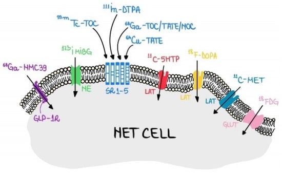 - Bodei, L.; Kidd, M.; Gilardi, L.; Volterrani, D.; Paganelli, G.; Grana, C.M.; Modlin, I.M. Diagnostic applications of nuclear medicine: Neuroendocrine tumors. In Nuclear Oncology; Strauss, H.W., Mariani, G., Volterrani, D., Larson, S.M., Eds.; Springer International Publishing: New York, NY, USA, 2017; pp. 799–838. [Google Scholar]