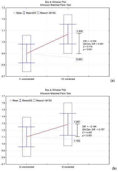 | I3 corrected | 0.915 (0.875–0.986) | 0.051 | <0.001 * | |