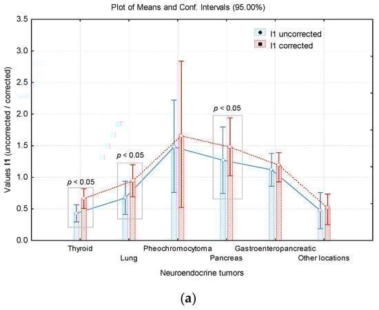 | Thyroid | I1 uncorrected | 0.714 (0.606–0.823) | 0.055 | 0.002 * |