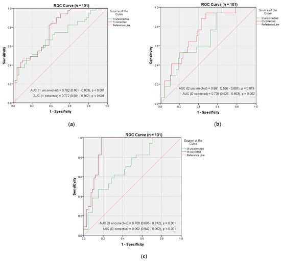 | I1 corrected | 0.808 (0.707–0.909) | 0.052 | <0.001 * | |