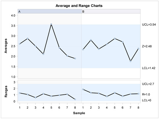The Gage R&R statistical analysis of the lineal measurement technique in terms of the distance of the palatine suture expansion through palatine rapid maxillary expansion technique showed a repeatability value of 73.68% and repeatability values below 1% are necessary to demonstrate high repeatability rate (Figure 8 and Figure 9). In addition, the Gage R&R statistical analysis of the lineal measurement technique in terms of the distance of the palatine suture expansion through palatine rapid maxillary expansion technique performed by the two operators showed a reproducibility value of 0.00%. Reproducibility values below 1% are necessary to demonstrate high reproducibility; therefore, the lineal measurement technique demonstrated a high reproducibility rate for the lineal measurement of the palatine suture expansion through palatine rapid maxillary expansion technique (Figure 8 and Figure 9).