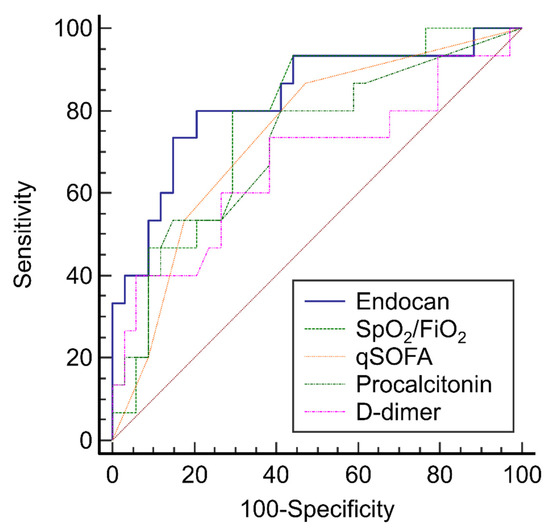 In contrast, NLR and endocan changes during the 7-day study period were useful in differentiating patients who failed to liberate from oxygen therapy at day 28 and the predictive value of a 7-day increase in endocan level was excellent. NLR, calculated as the ratio of neutrophil and lymphocyte counts, is an inflammatory biomarker that predicts mortality in critically ill patients [27]. In patients with COVID-19, a higher NLR appears to be an early risk factor for mortality [28]. In addition, serum endocan levels are elevated in several vascular pathologies, such as coronary artery disease and diabetes [29,30]. Previous studies have demonstrated that the SARS-CoV-2-induced hyperinflammatory response results in severe endothelial disruption and thrombus formation, which may cause pulmonary hypertension, increased dead space ventilation, and right heart failure [31]. Therefore, it may be biologically plausible that follow-up levels of endocan, a biomarker of endothelial injury, may be useful as a prognostic factor in patients with severe COVID-19 requiring oxygen therapy.