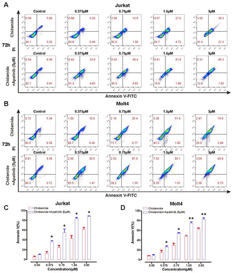 APA StyleZhong, M., Lin, F., Jiang, Y., Pan, G., Tan, J., Zhou, H., Lai, Q., Chen, Q., Deng, M., Zha, J., & Xu, B. (2021). Therapeutic Interaction of Apatinib and Chidamide in T-Cell Acute Lymphoblastic Leukemia through Interference with Mitochondria Associated Biogenesis and Intrinsic Apoptosis. Journal of Personalized Medicine, 11(10), 977. https://doi.org/10.3390/jpm11100977
