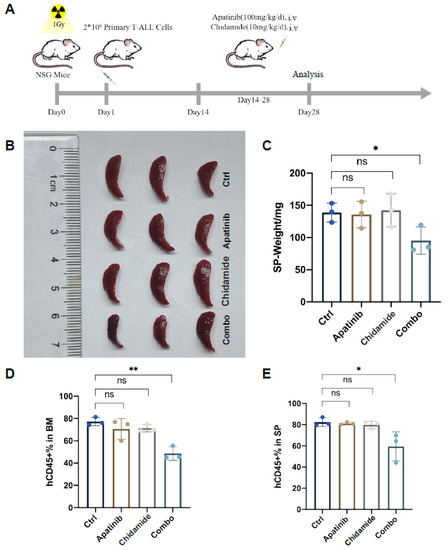 3.5. Apatinib and Chidamide Are Active to Abrogate Leukemic Burden in a T-ALL PDX Model