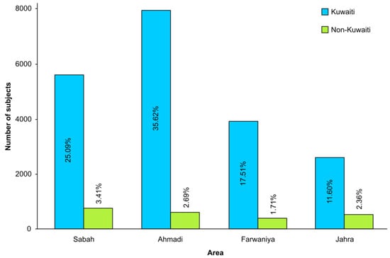 Percentages of screened Kuwaitis vs. Non-Kuwaitis according to the designated Premarital Reception Center.