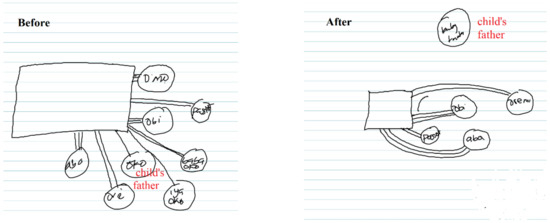 The instructions that guided the creation of the diagrams were adapted from Pienaar et al.’s [] communication mapping methodology, an approach that is embedded in communicative ecology models. Broad et al. [] defined communicative ecologies as the network of connections individuals or groups depend upon to achieve their goals. Thus, from a communicative ecology perspective, the different people who are involved in an ecology, their relationships, and the social institutions and structures that connect them are the focus of analysis []. Visually representing social networks through diagrams has been found to facilitate meaningful discussions about social networks and the social context in which giving and receiving social support occurs []. In this study, elucidating information through social network drawings was important since women bereaved by stillbirth often perceive that their grief is not real and may be reluctant to discuss their experience publicly [].