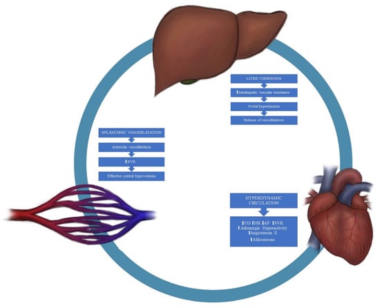 - Licata, A.; Mazzola, A.; Ingrassia, D.; Calvaruso, V.; Cammà, C.; Craxì, A. Clinical implications of the hyperdynamic syndrome in cirrhosis. Eur. J. Intern. Med. 2014, 25, 795–802. [Google Scholar] [CrossRef]