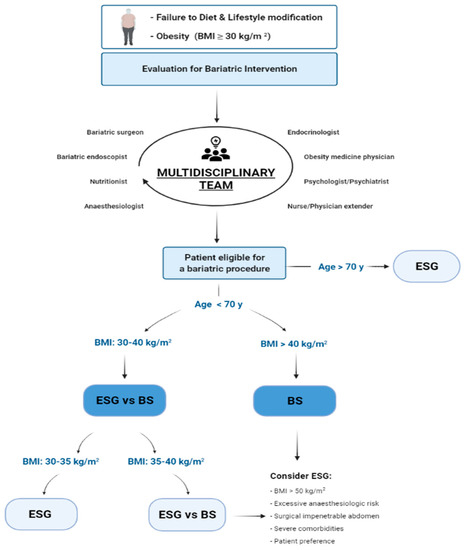 - Chang, S.H.; Stoll, C.R.T.; Song, J.; Varela, J.E.; Eagon, C.J.; Colditz, G.A. The effectiveness and risks of bariatric surgery: An updated systematic review and meta-analysis, 2003-2012. JAMA 2014, 149, 275–287. [Google Scholar] [CrossRef] [PubMed] [Green Version]