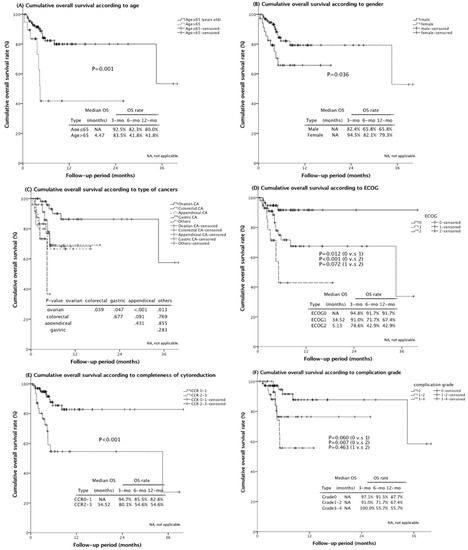 - Mizumoto, A.; Canbay, E.; Hirano, M.; Takao, N.; Matsuda, T.; Ichinose, M.; Yonemura, Y. Morbidity and mortality outcomes of cytoreductive surgery and hyperthermic intraperitoneal chemotherapy at a single institution in Japan. Gastroenterol. Res. Pract. 2012, 2012, 836425. [Google Scholar] [CrossRef] [Green Version]