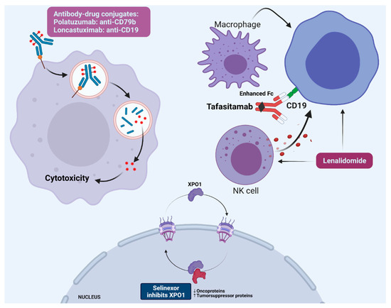 - Kalakonda, N.; Maerevoet, M.; Cavallo, F.; Follows, G.; Goy, A.; Vermaat, J.S.P.; Casasnovas, O.; Hamad, N.; Zijlstra, J.M.; Bakhshi, S.; et al. Selinexor in patients with relapsed or refractory diffuse large B-cell lymphoma (SADAL): A single-arm, multinational, multicentre, open-label, phase 2 trial. Lancet Haematol. 2020, 7, e511–e522. [Google Scholar] [CrossRef]