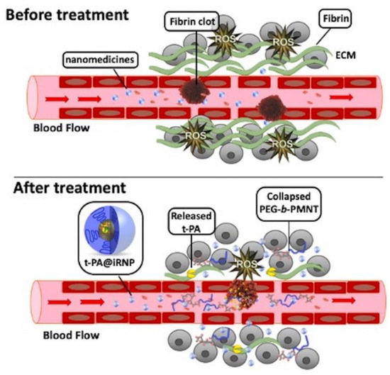 134. Mei, T.; Shashni, B.; Maeda, H.; Nagasaki, Y. Fibrinolytic tissue plasminogen activator installed redox-active nanoparticles (t-PA@iRNP) for cancer therapy. Biomaterials 2020, 259, 120290. [Google Scholar] [CrossRef]