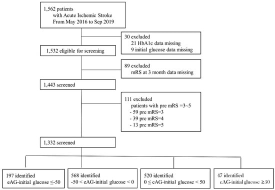 Kim, Y.; Lee, S.-H.; Kim, C.; Kang, M.K.; Yoon, B.-W.; Kim, T.J.; Bae, J.S.; Lee, J.-H. Personalized Consideration of Admission-Glucose Gap between Estimated Average and Initial Glucose Levels on Short-Term Stroke Outcome. J. Pers. Med. 2021, 11, 139. https://doi.org/10.3390/jpm11020139