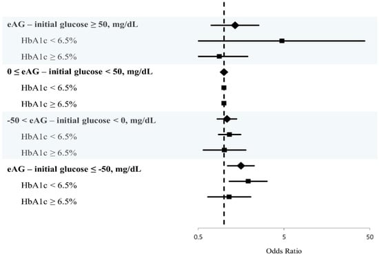 | eAG–initial glucose ≤ −50, mg/dL | 1.152 (0.650–2.042) | 0.628 |