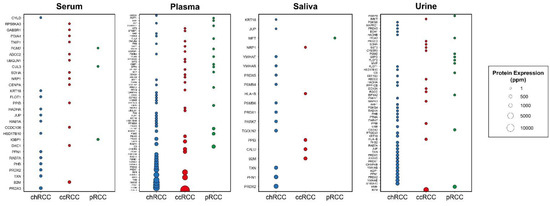 - Zhang, X.L.; Wu, Z.Z.; Xu, Y.; Wang, J.G.; Wang, Y.Q.; Cao, M.Q.; Wang, C.H. Saliva proteomic analysis reveals possible biomarkers of renal cell carcinoma. Open Chem. 2020, 18, 918–926. [Google Scholar] [CrossRef]
