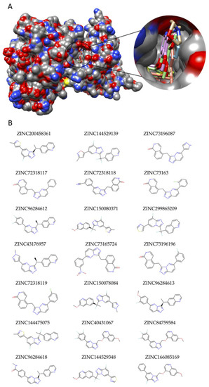 2.6. Identification of Candidate Drugs through Virtual Screening
