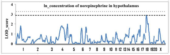 The genome scan revealed one significant and several suggestive loci associated with concentration of norepinephrine in the hypothalamus, indicating the polygenic control of the trait. The description of these QTL is given in Table 2.