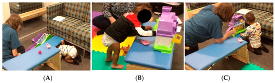 Therapeutic interventions for young children with or at risk of developing Cerebral Palsy (CP) vary across early intervention service models [1] as limited evidence exists to guide practice [2]. In particular, service models in early CP rehabilitation often lack theoretical grounding [3] and concrete definitions of the essential components of early intervention [1]. Examples of limited definitions include the lack of information on the timing and dose of intervention; the role of the parent, therapist, and child in the intervention; and the primary focus of the intervention [1,3,4,5,6,7]. A recent systematic review of dosage of early intervention therapies reported that 119 hours over 3–10 weeks (11.9–40 h/week) was found to elicit improvements in motor outcomes in infants with CP [6]. However, early intervention therapies (provided under the Individuals with Disabilities Education Improvement Act [8]) average 2–3 h per month [5]. The under dosing of direct therapy services is justified by family engagement to provide adequate interventions outside of therapies within the context of family everyday routines [6,9,10,11]. Parents are thus expected to provide 9–38 h per week of activities to meet the dose guideline. In addition to the challenges of meeting adequate dosing, intervention may not promote movement driven by the infant’s cognitive curiosity, thus failing to be grounded in action-perception and embodied cognition theories [3,4]. Rather, many rehabilitation interventions focus simply on body structure and functions without adequately considering the multi-domain developmental changes necessary for integrating therapeutic procedures into a child and family’s daily activities [12,13].